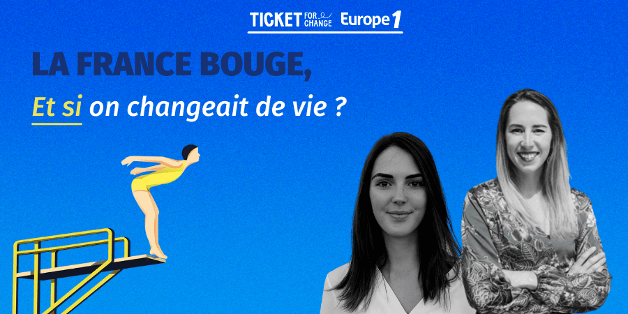 Ticket for Change s’est associé à la radio Europe 1 pour réaliser une série d’émission spéciale « LA FRANCE BOUGE : « Et si on changeait de vie » avec des conseils concrets d’experts et les retours d’expériences de personnes qui ont sauté le pas.