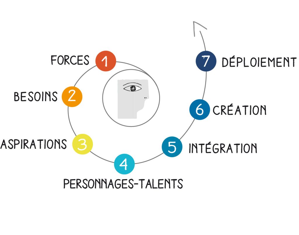 On a tous environ entre 4 et 8 personnages-talents et chacun de ces personnages reçoit un nom le qualifiant, chacun représente une combinaison de forces, de valeurs, de besoins, d’aspirations à laquelle peut aussi être associés des zones d’ombres !