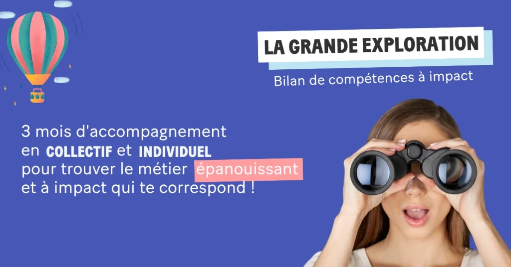 C’est pourquoi nous vous proposons de vous accompagner pendant 3 mois pour définir un projet professionnel à impact qui vous ressemble, dans lequel vous serez épanoui, y trouverez du sens et qui contribuera à ce monde plus désirable pour nos enfants.